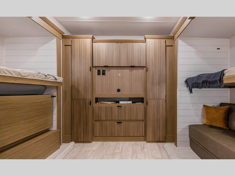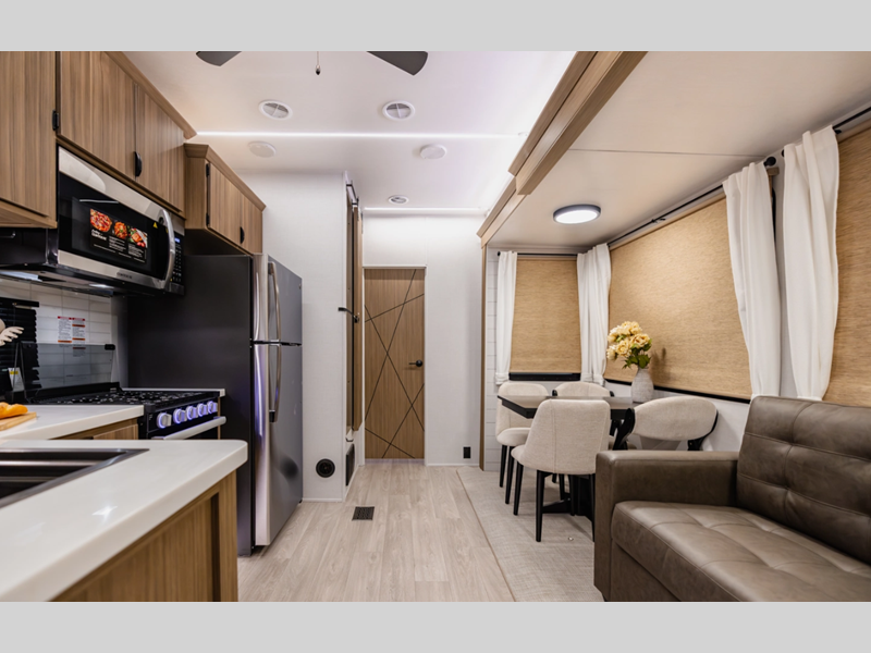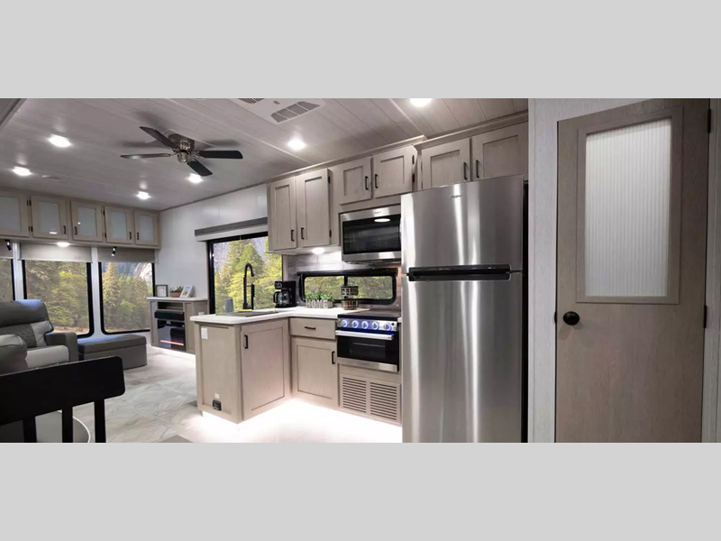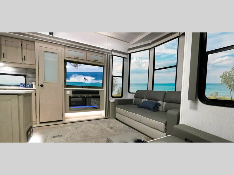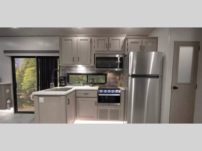 Enjoy crystal-clear sound with our JBL 3-Zone entertainment center, perfect for movie nights or game days. And, cook up a storm in style with our stainless steel kitchen appliances. Some of the new features you will enjoy include a Versa-sink, TFL black walnut entertainment shelves, and stylish roller shades. There are also standard 4K awning blade lighting and a 60K tankless water heater!