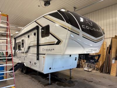 The Keystone Cougar Half-Ton fifth wheel and travel trailers are known as one of America's favorites for a reason! Some of those reasons are the exclusive features that come from Keystone, like the Winegard Air 360+ omni-directional rooftop antenna, the in-floor heating ducts, and the HyperCore composite wall construction with Vixen Fibrogloss high-gloss finish. The Cougar Half-Ton has a Climate Guard protection package with heat-deflecting white sidewalls, two roof attic vents, PEX plumbing and more to enjoy four season camping. Inside, you'll love the dimmable lighting, night roller shades throughout, shower skylight, and bedside USB outlets to keep your electronics charged.
