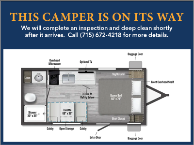 Dick's RV is not responsible for any misprints, typos, or errors found in our website pages. Any price listed excludes taxes, license, title/Registration fees, insurance, and $499.50 dealer fee. Manufacturer pictures, specifications, and features may be used in place of actual units on our lot. Please contact us @715-672-4218 for availability as our inventory changes rapidly. All calculated payments are an estimate only and do not constitute a commitment that financing or a specific interest rate or term is available.