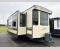 Enter the glass sliding patio doors and head right into the combined kitchen and living space. There is a free standing dinette with four chairs and a theater seat for two including overhead storage in the slide out to your right. Opposite find a slide out that features the kitchen appliances and the entertainment center with HDTV and fireplace. There is a refrigerator, three burner range, counter space, and a pantry within the slide. Just off the slide find more counter space along the interior living room wall. You will also love the convenient center island with double sink and more storage and food prep space.